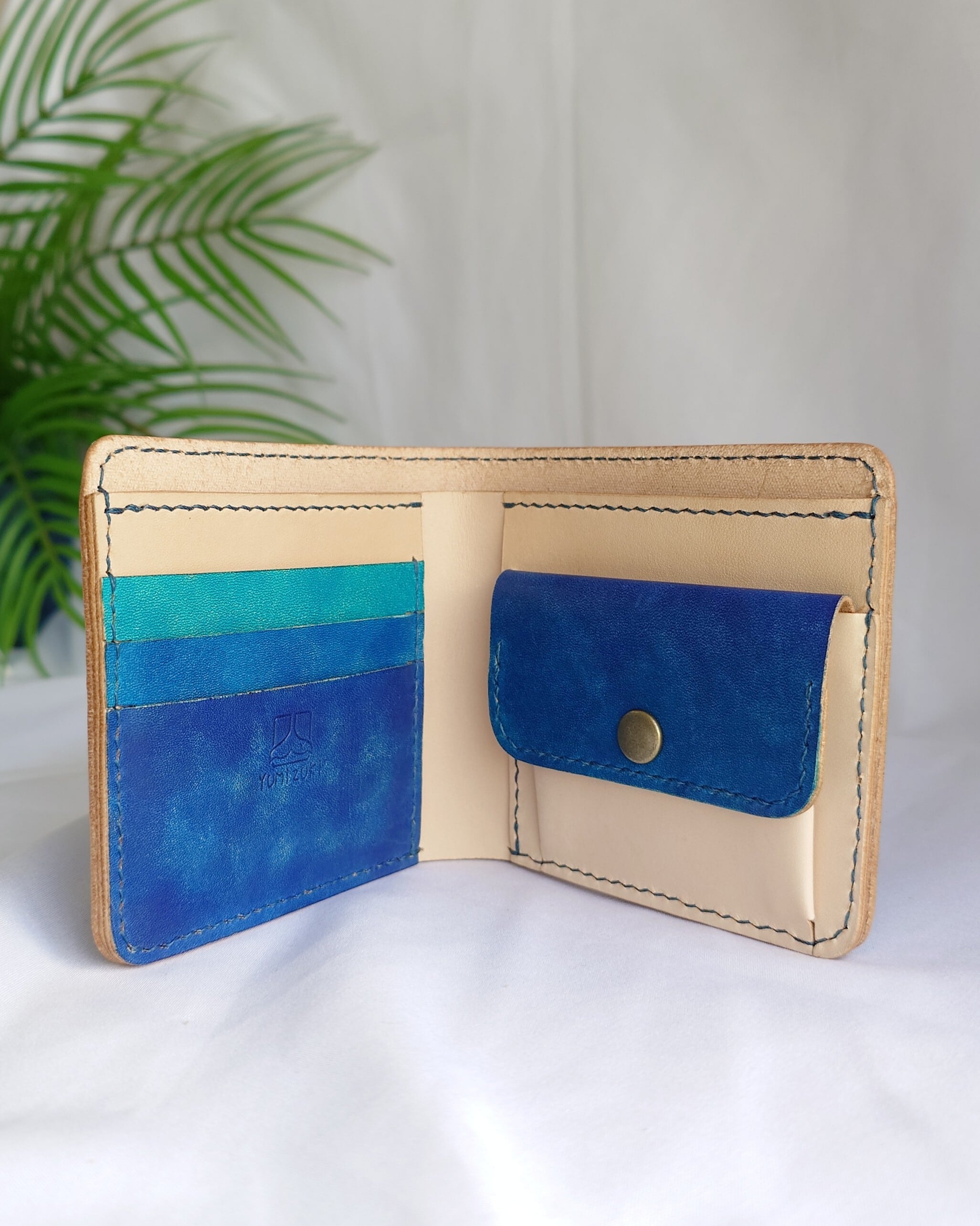 【セミオーダー】二つ折り財布 慶良間ブルー 本革 手染め 沖縄 海 ブルー 青