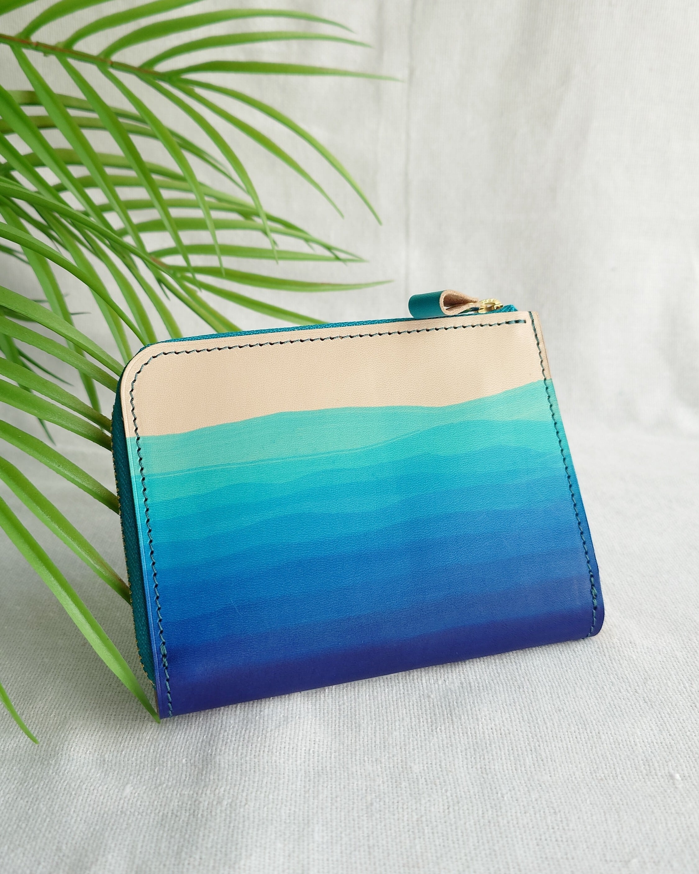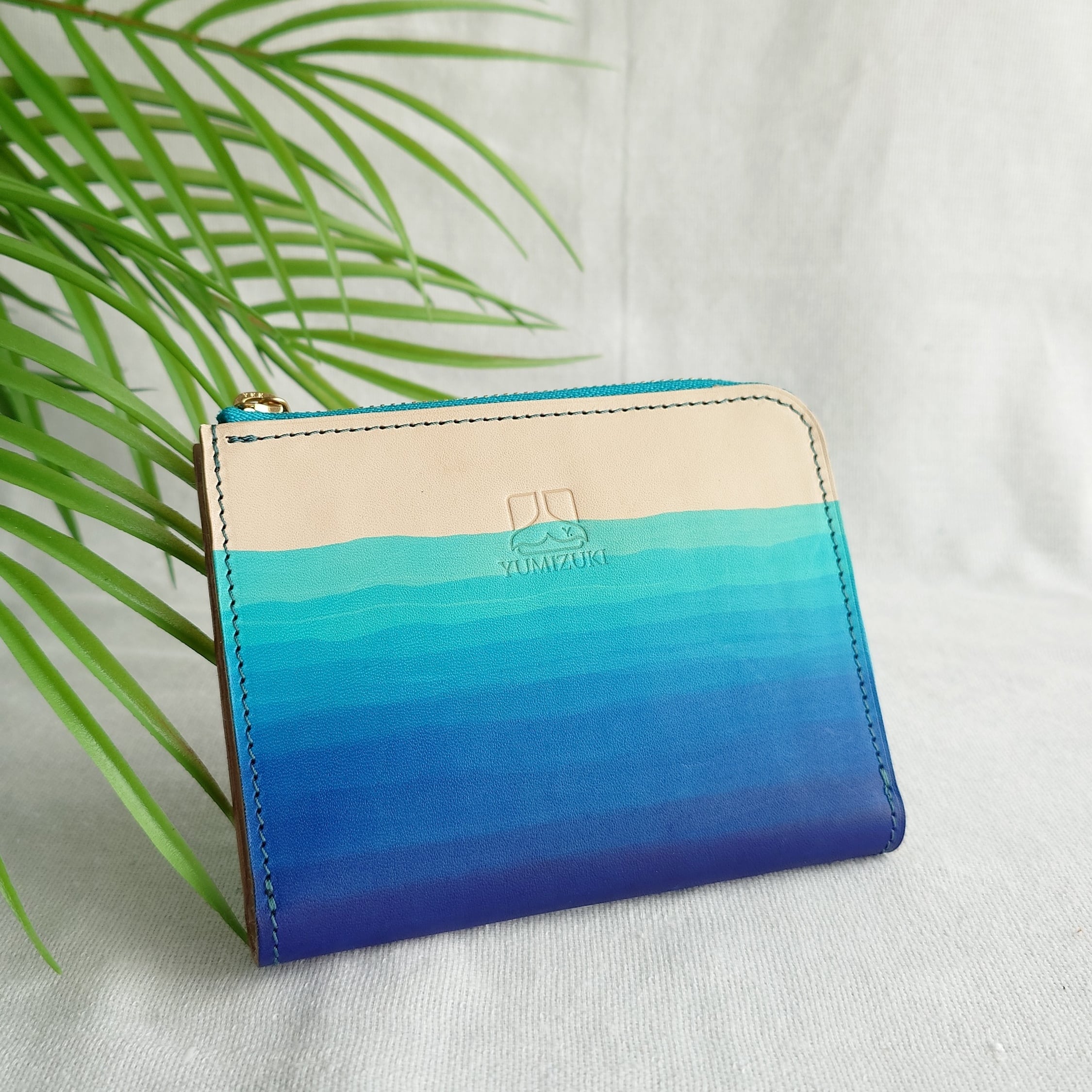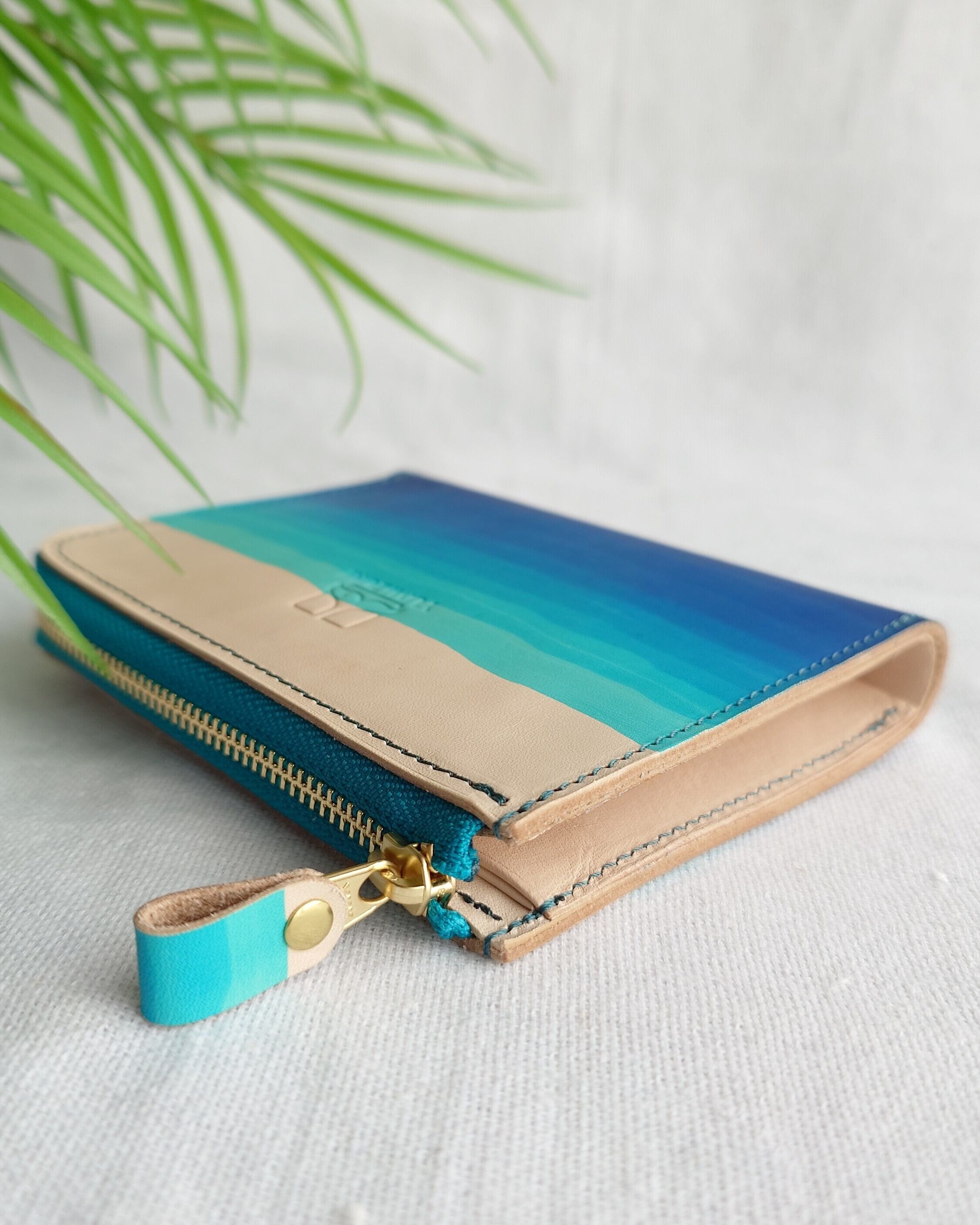 L字ファスナーハーフウォレット 浜下り模様 沖縄の海 手染め 本革