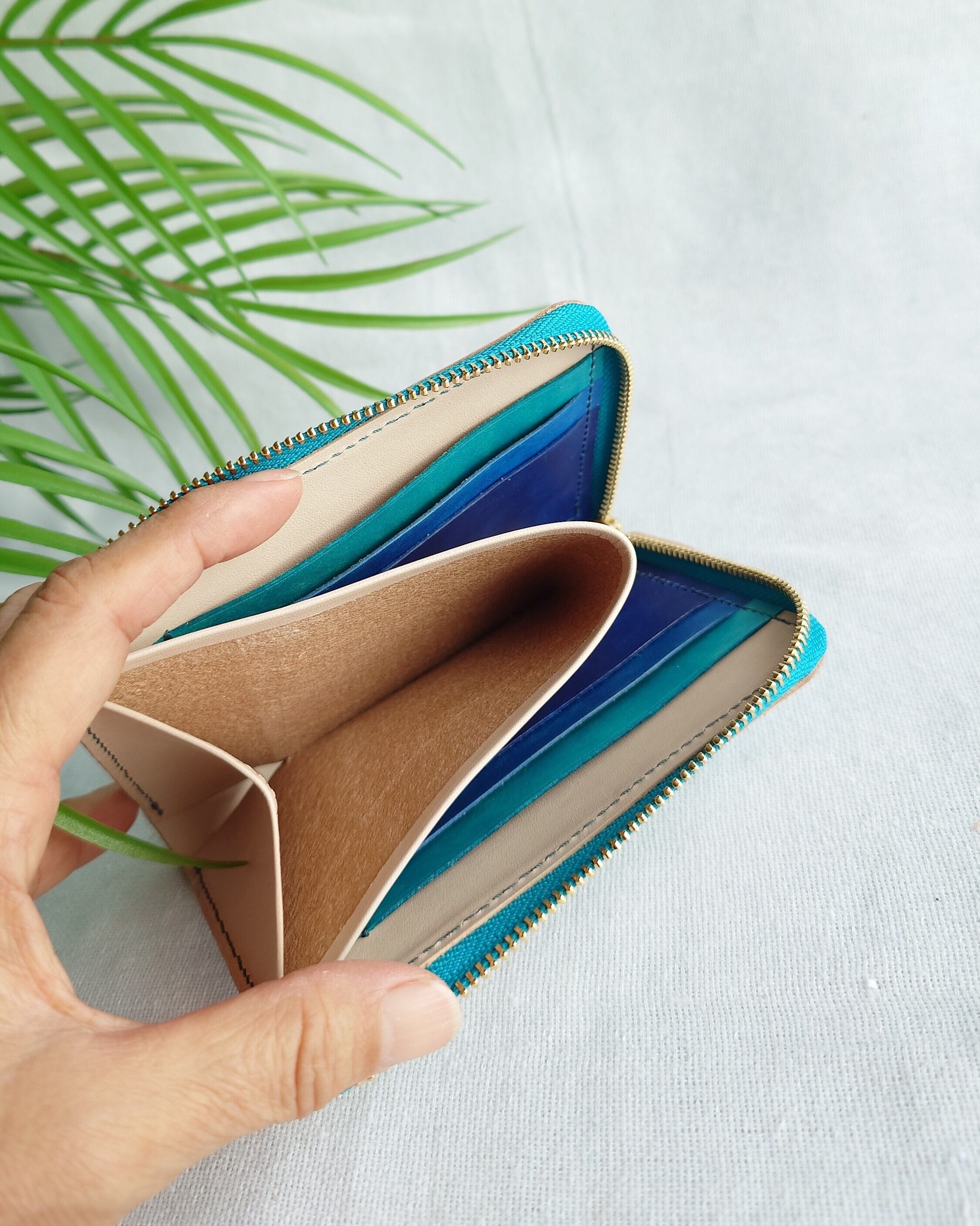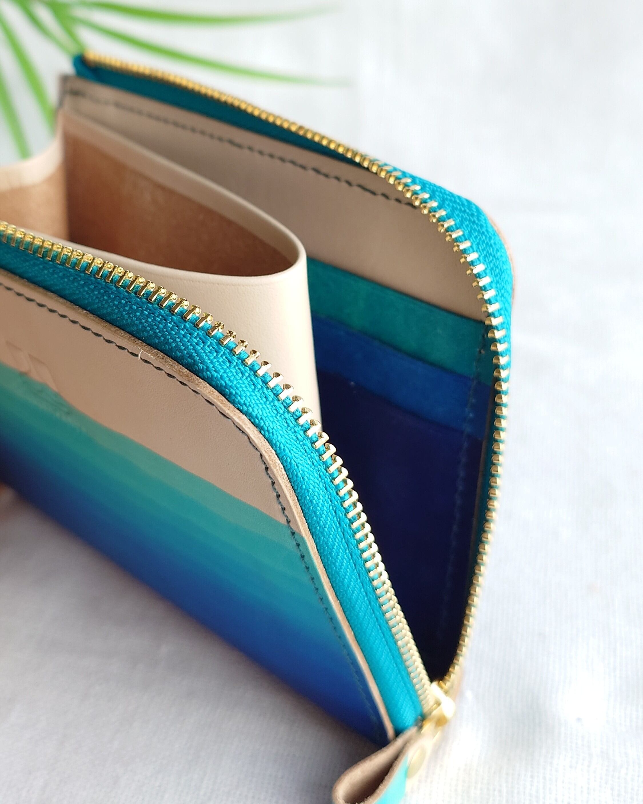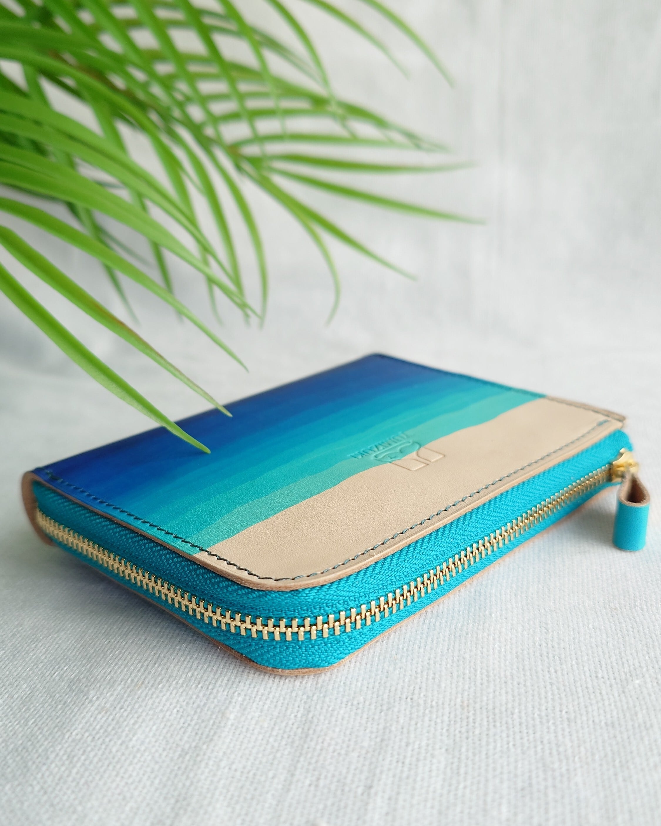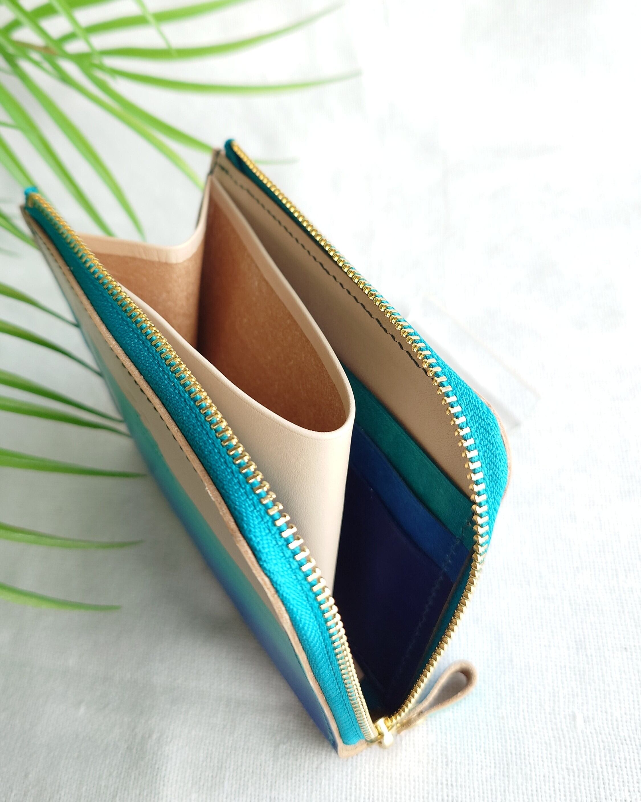 L字ファスナーハーフウォレット 浜下り模様 沖縄の海 手染め 本革